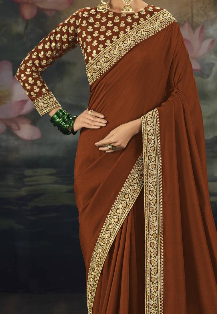 | Product Name | Dark Orange Pure Muga Silk Saree With Zari & Metal Sequin Heavy Work | |