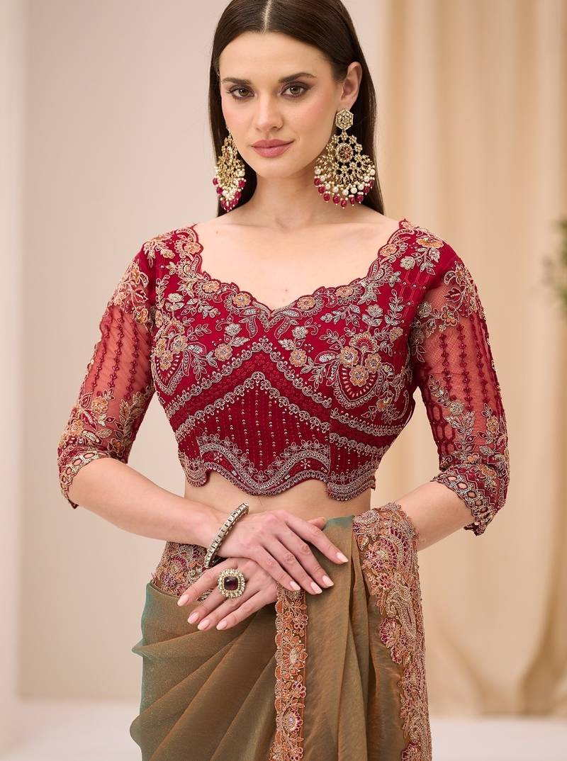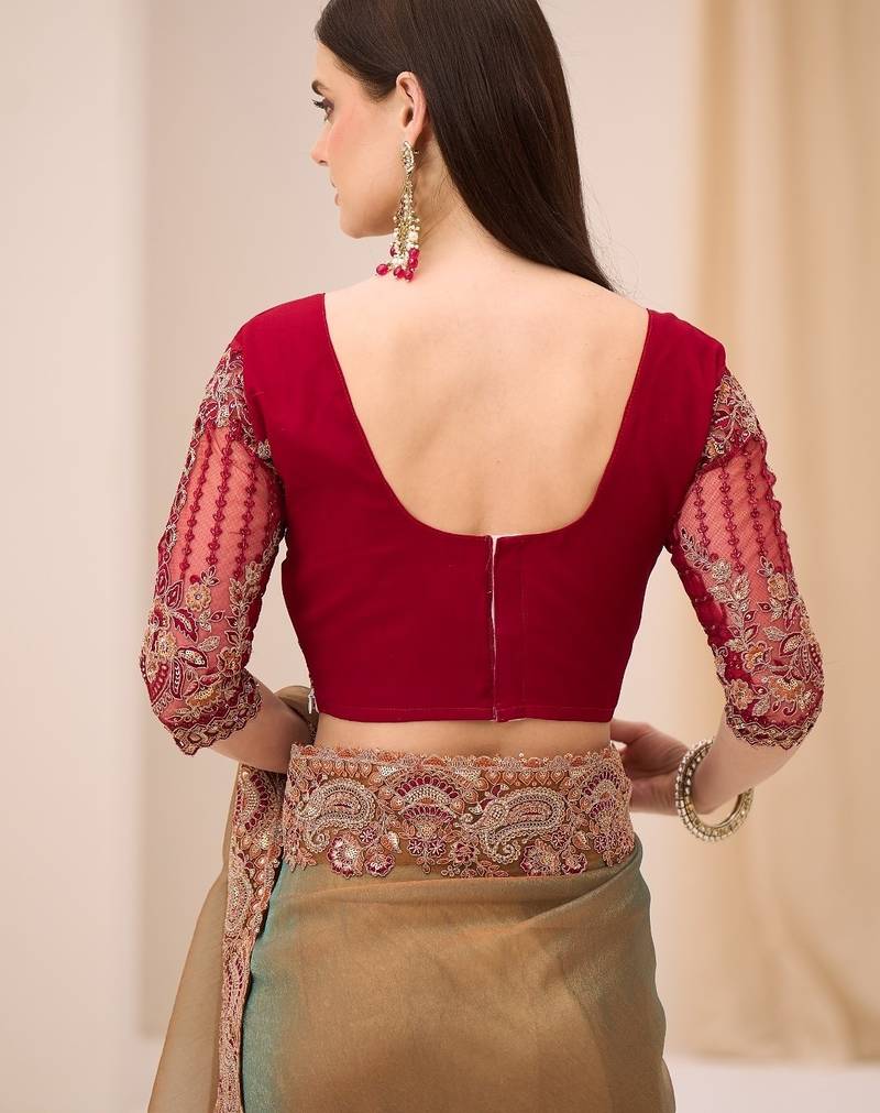 Dual shade georgette tissue saree with georgette work blouse