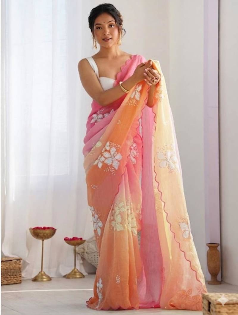 | Product Name | Orange Gold Crush Embroidered Work Saree | |