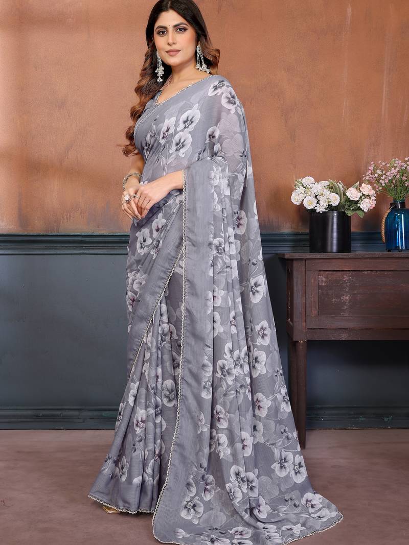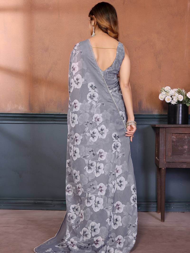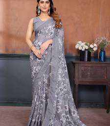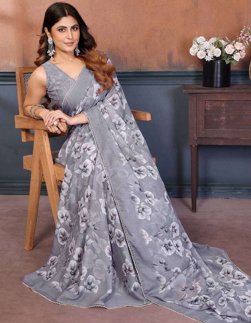 Grey color sharmili georgette silk printed saree with unstitched blouse | rich tone colour designer saree |