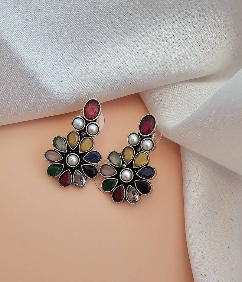 | Product Name | German Silver Antique Multi Color Flower Stud | |