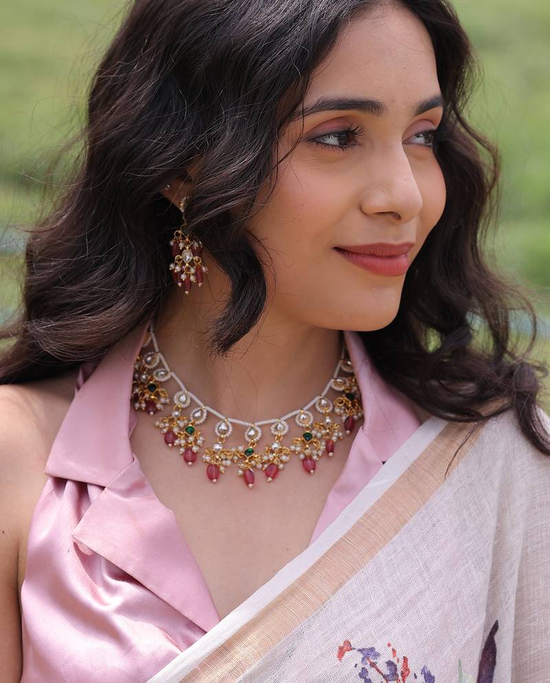 | Product Name | Rosy Splendor Eternal Charm Pachi Kundan Necklace Set | |