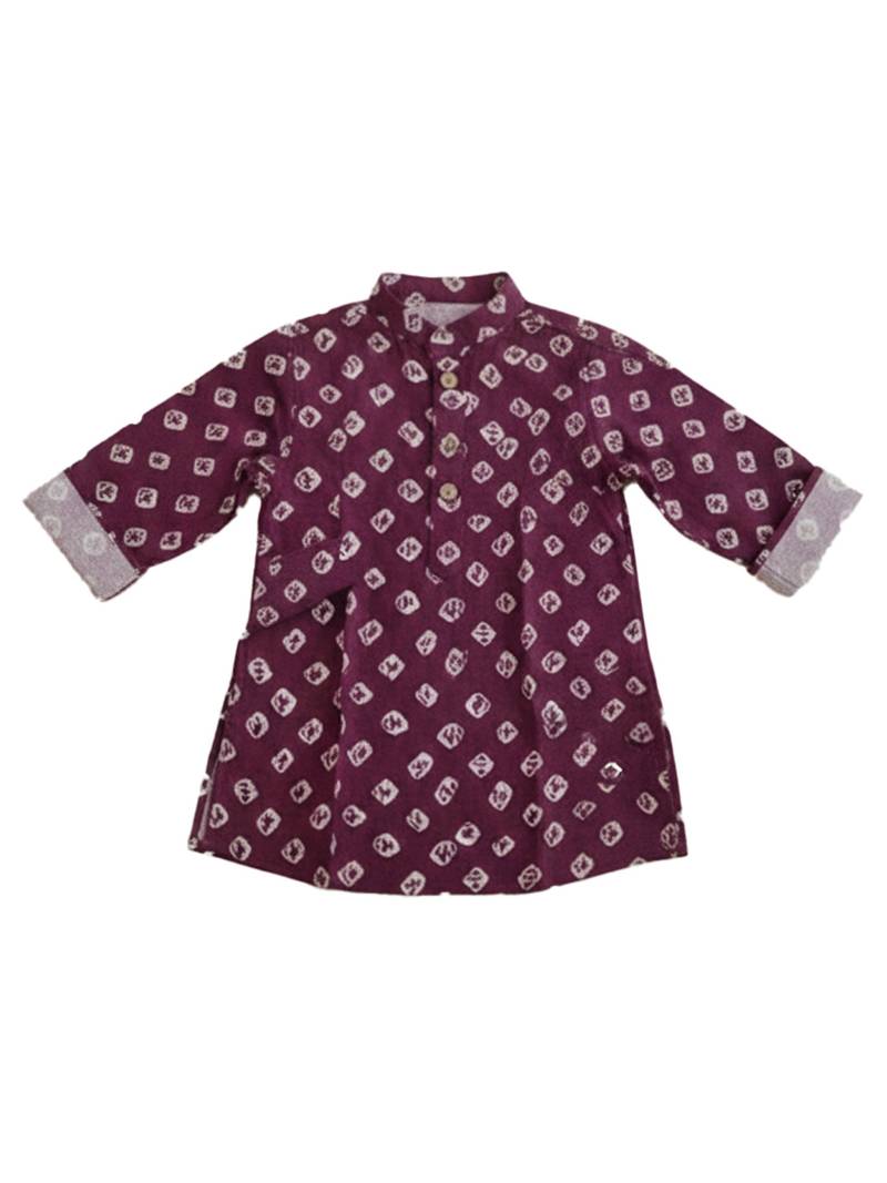 Fullsleeves bandhni short kurta for infant boys purple
