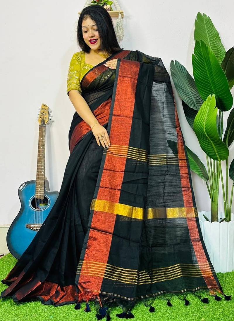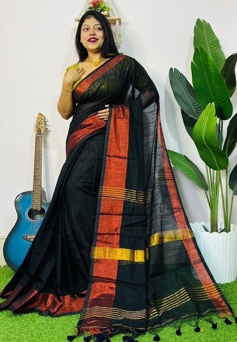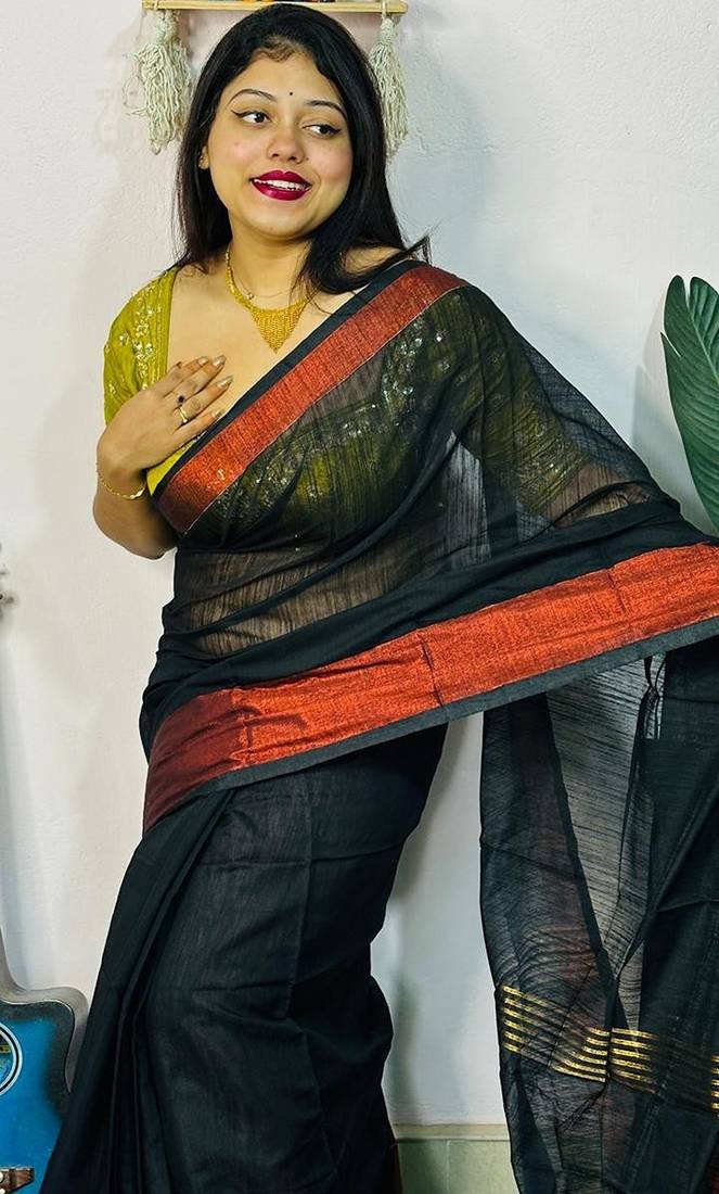 | Product Name | Black Fancy Cotton Handloom Saree With Blouse Piece For Women | |