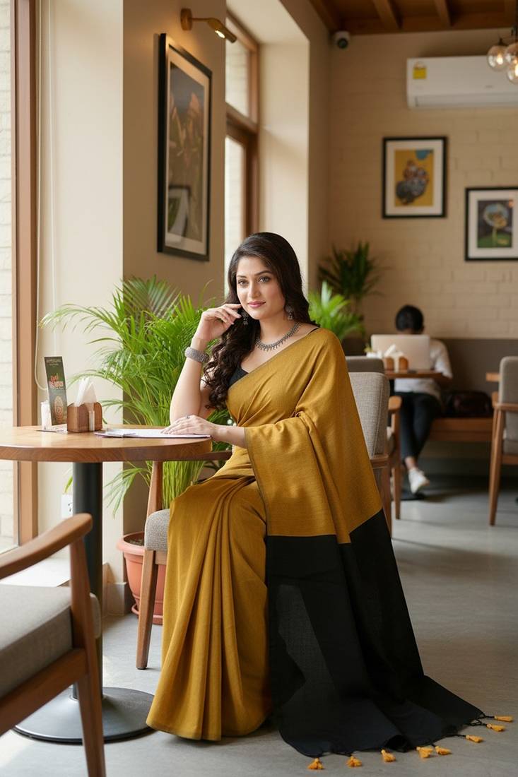| Product Name | Mustered & Black Fancy Cotton Handloom Saree With Blouse Piece For Women | |
