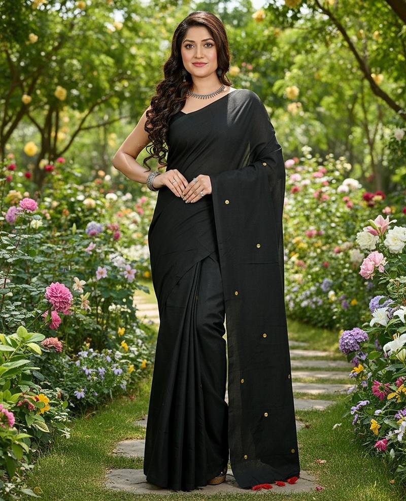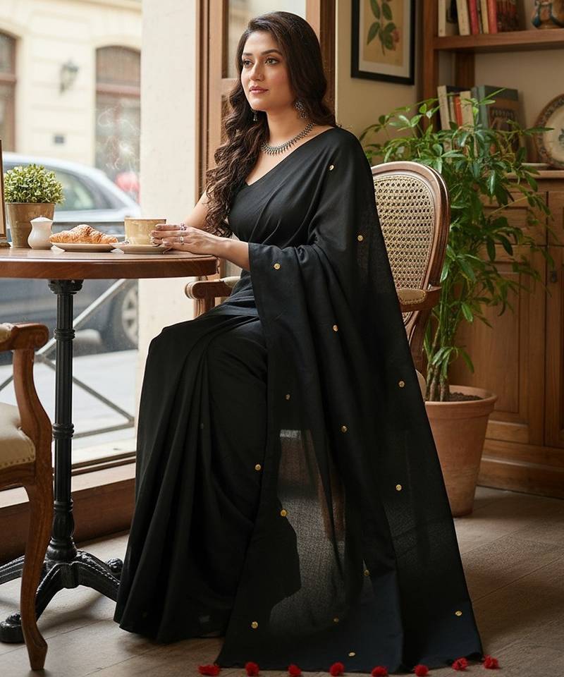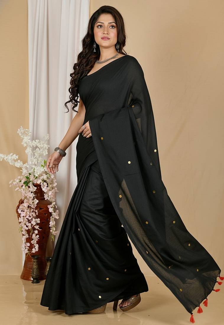 | Product Name | Black Fancy Cotton Handloom Saree With Blouse Piece For Women | |
