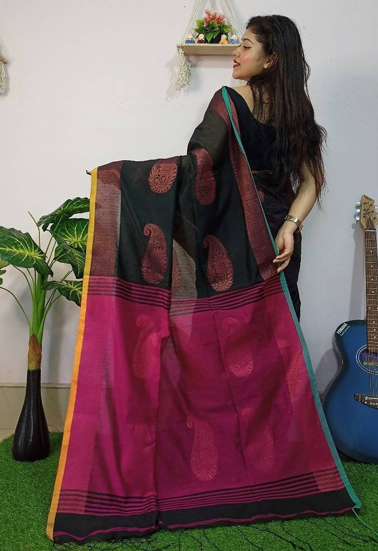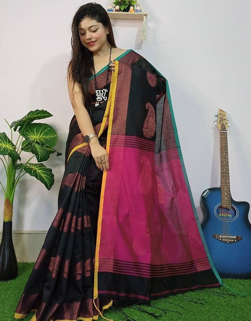 | Product Name | Black & Pink Fancy Cotton Handloom Saree With Blouse Piece For Women | |