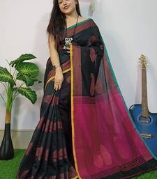 Black & pink fancy cotton handloom saree with blouse piece for women
