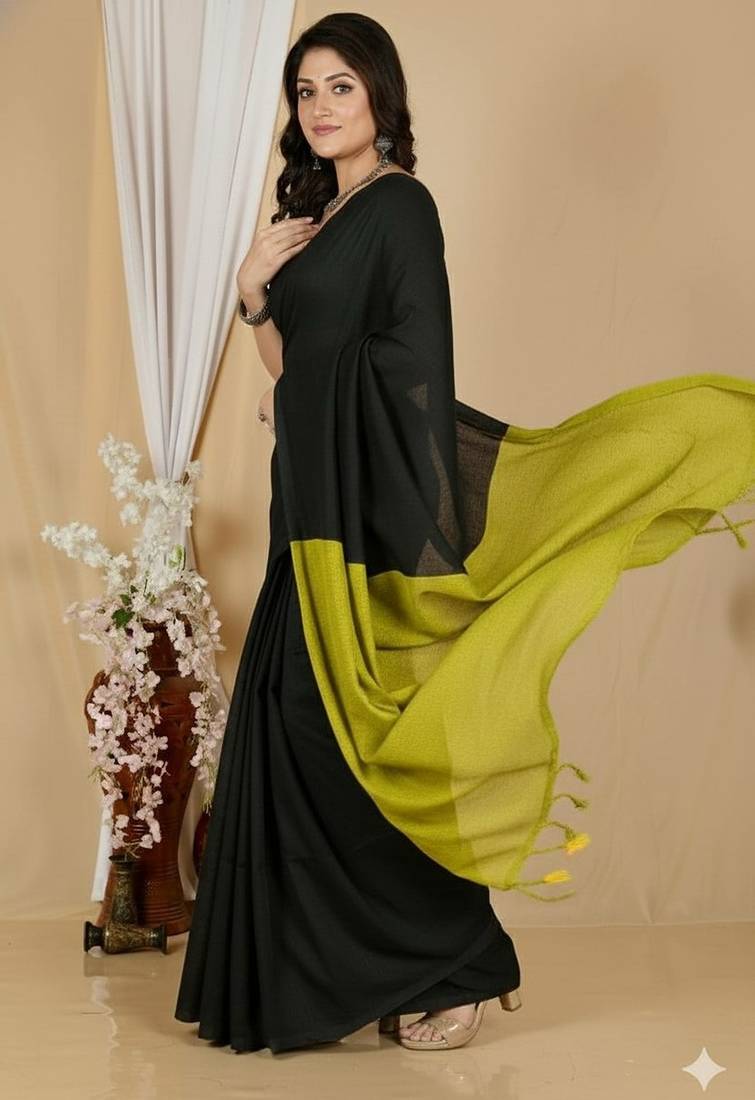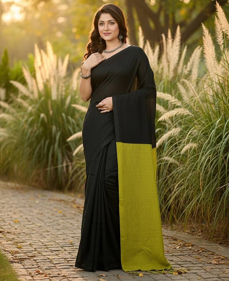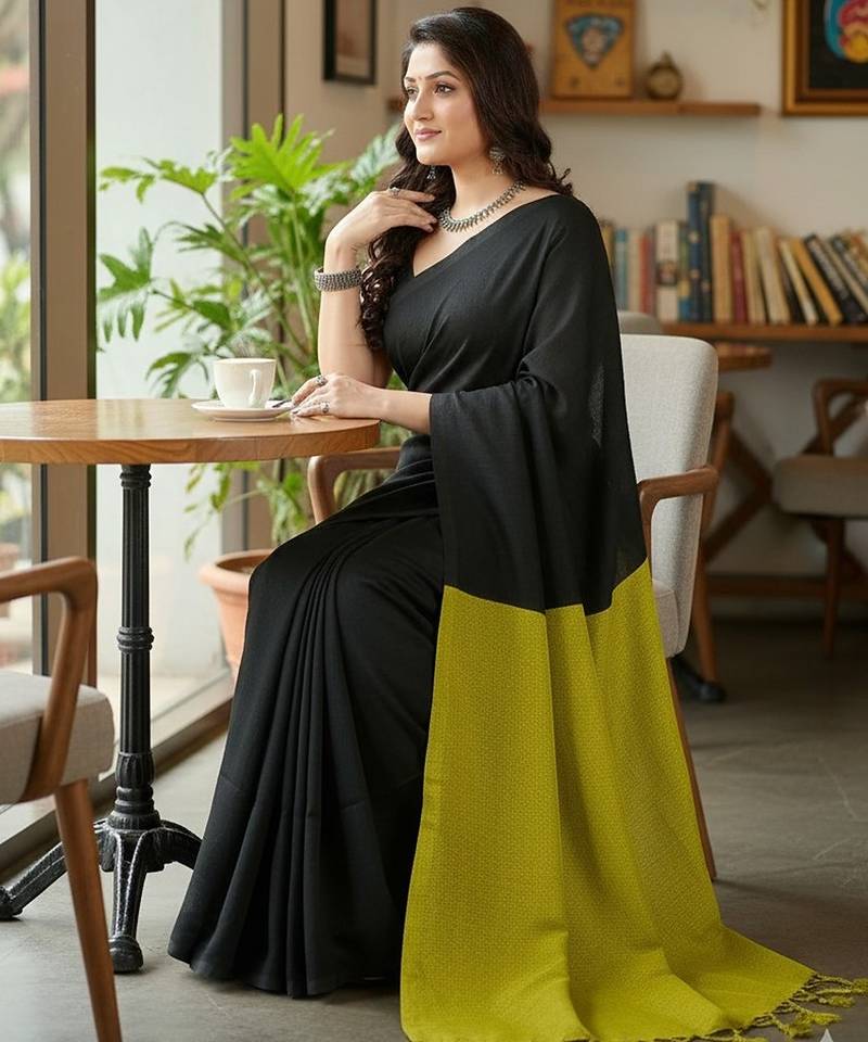 | Product Name | Black & Yellow Fancy Cotton Handloom Saree With Blouse Piece For Women | |