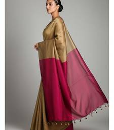 Cream & rani fancy cotton handloom saree with blouse piece for women