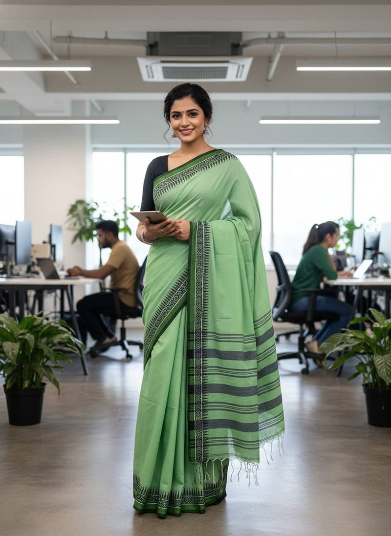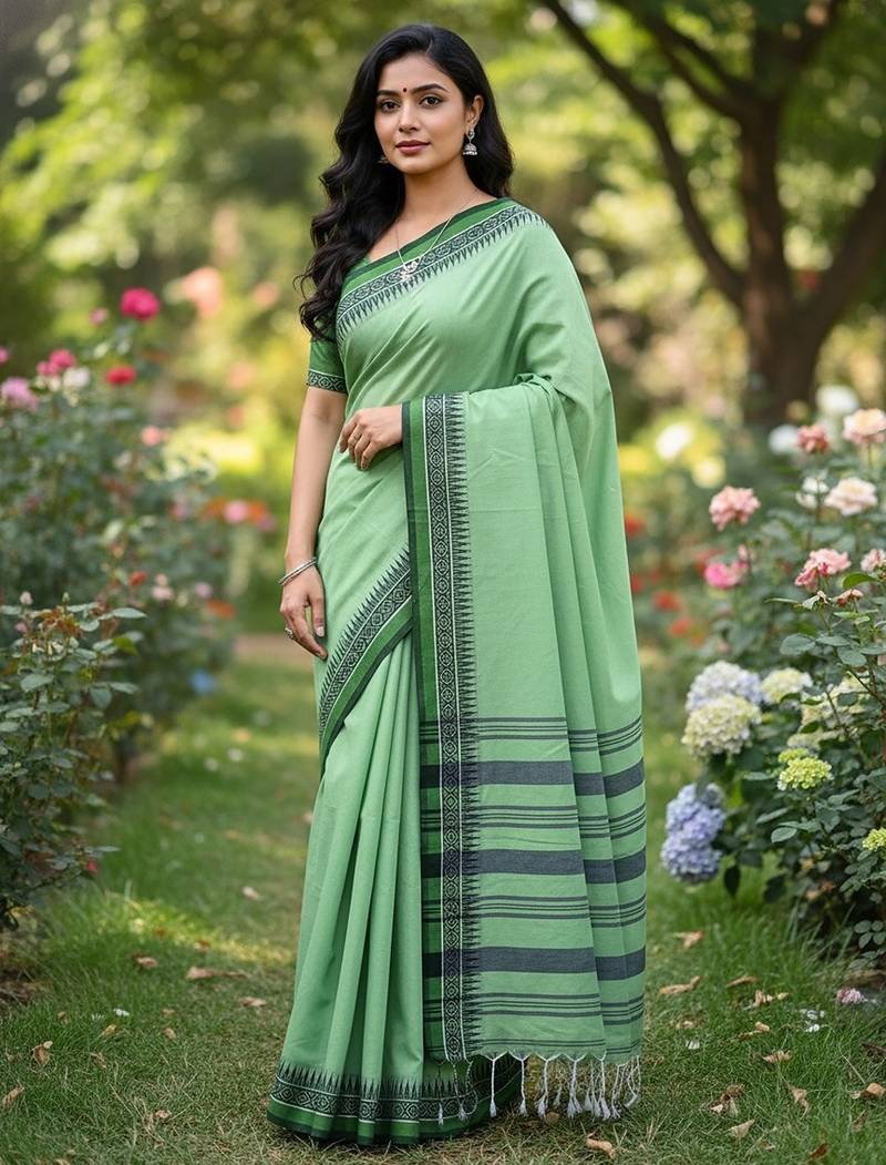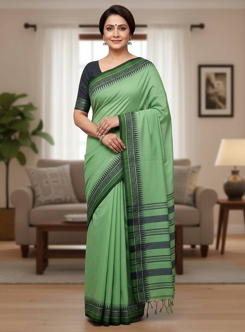 | Product Name | Green Fancy Cotton Handloom Saree With Blouse Piece For Women | |
