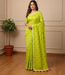 Green fancy cotton handloom saree with blouse piece for women