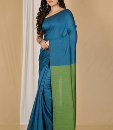 Green fancy cotton handloom saree with blouse piece for women