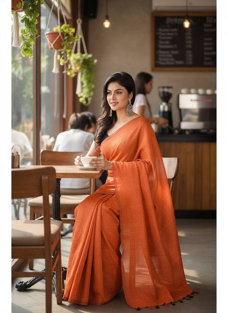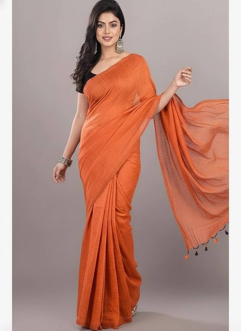 | Product Name | Orange Fancy Cotton Handloom Saree With Blouse Piece For Women | |