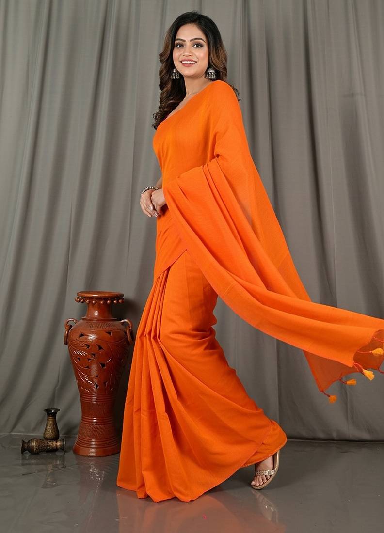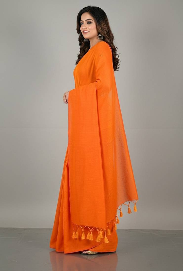 | Product Name | Orange Fancy Cotton Handloom Saree With Blouse Piece For Women | |