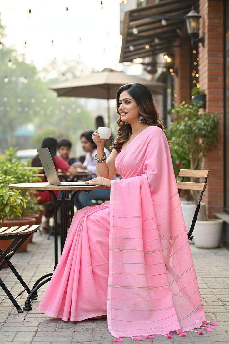 | Product Name | Pink Fancy Cotton Handloom Saree With Blouse Piece For Women | |