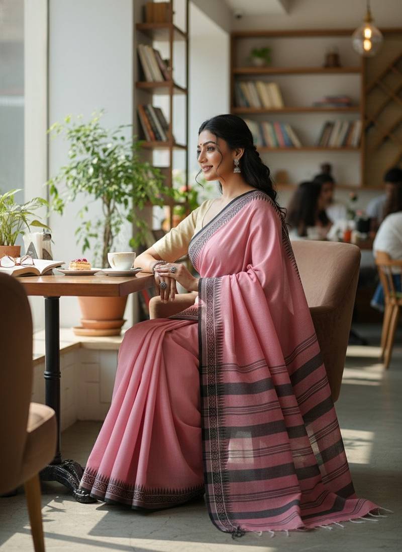| Product Name | Pink Fancy Cotton Handloom Saree With Blouse Piece For Women | |