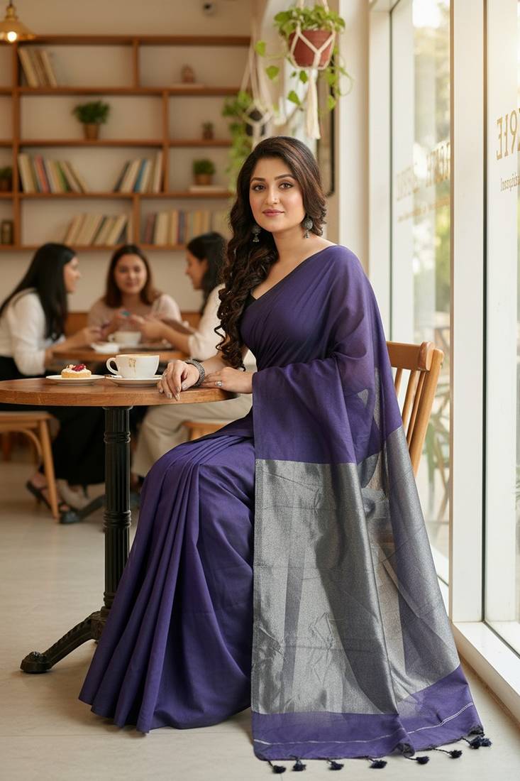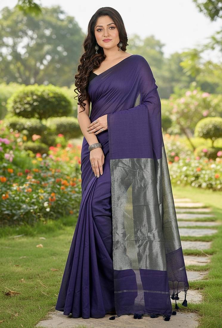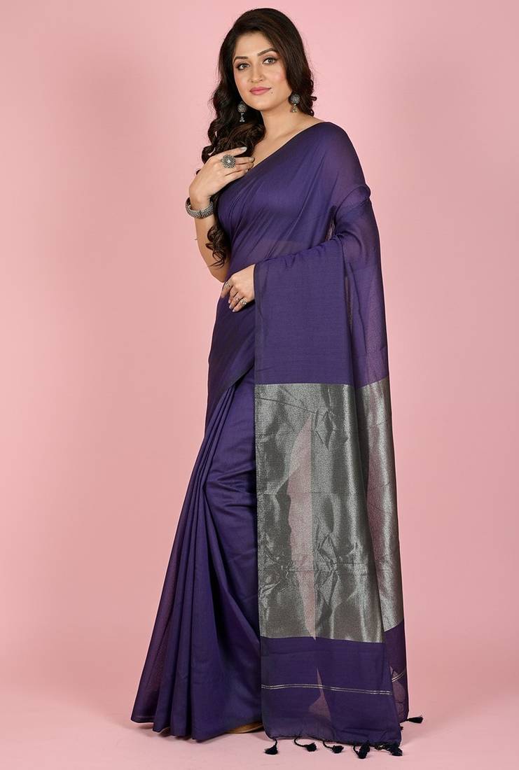 | Product Name | Purple Fancy Cotton Handloom Saree With Blouse Piece For Women | |