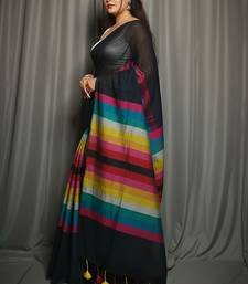 Rainbow fancy cotton handloom saree with blouse piece for women