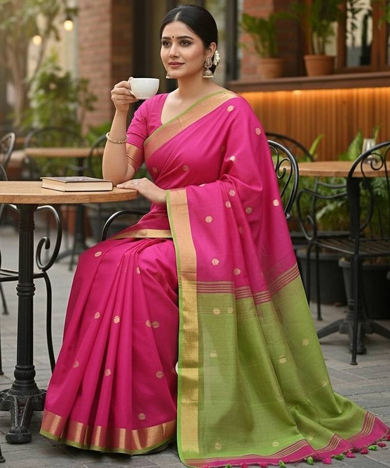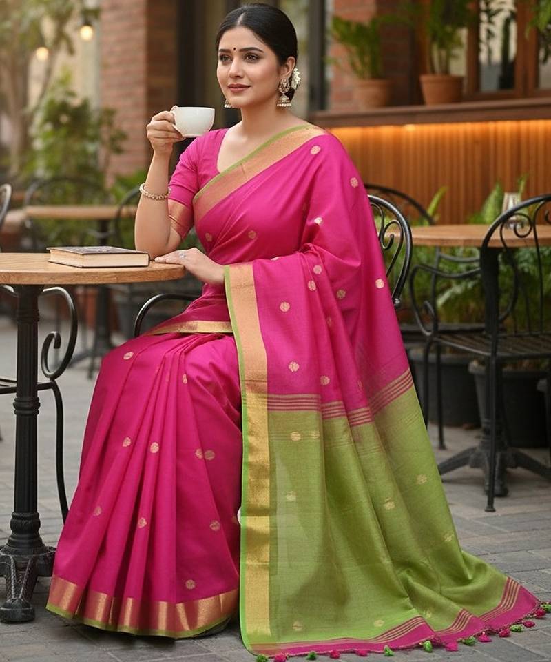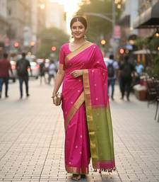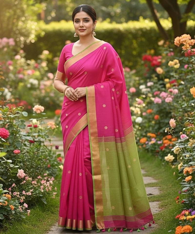 Rani & green fancy cotton handloom saree with blouse piece for women