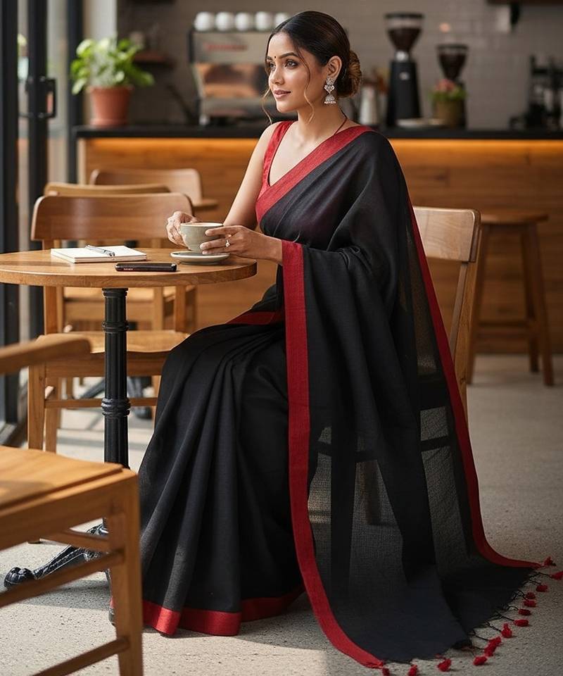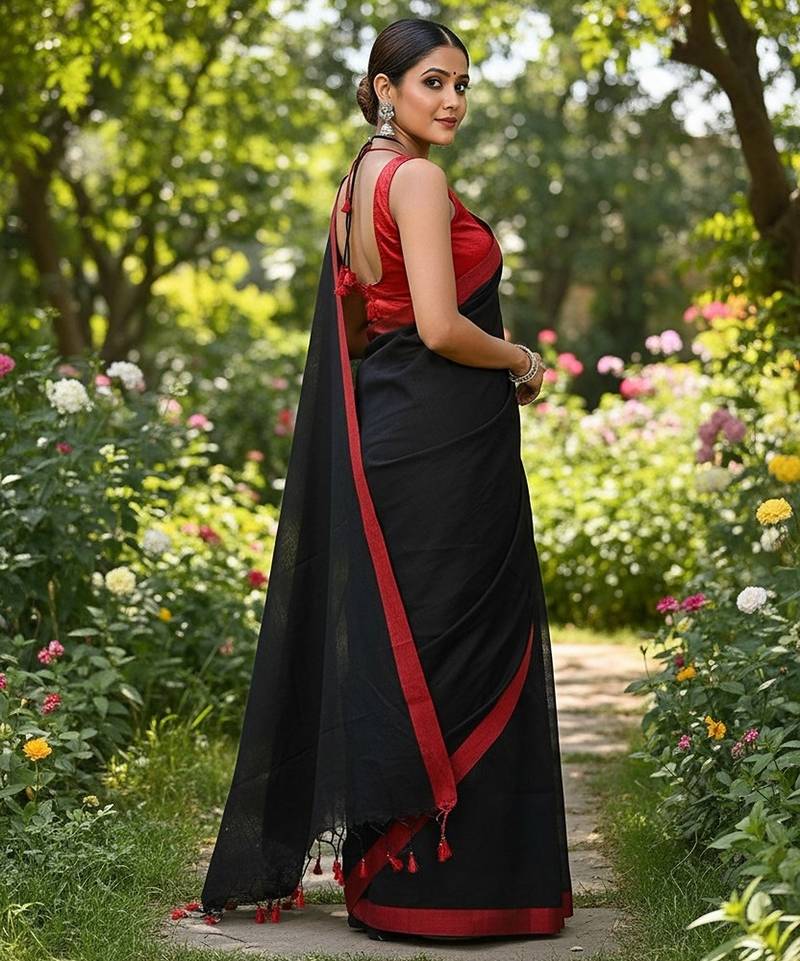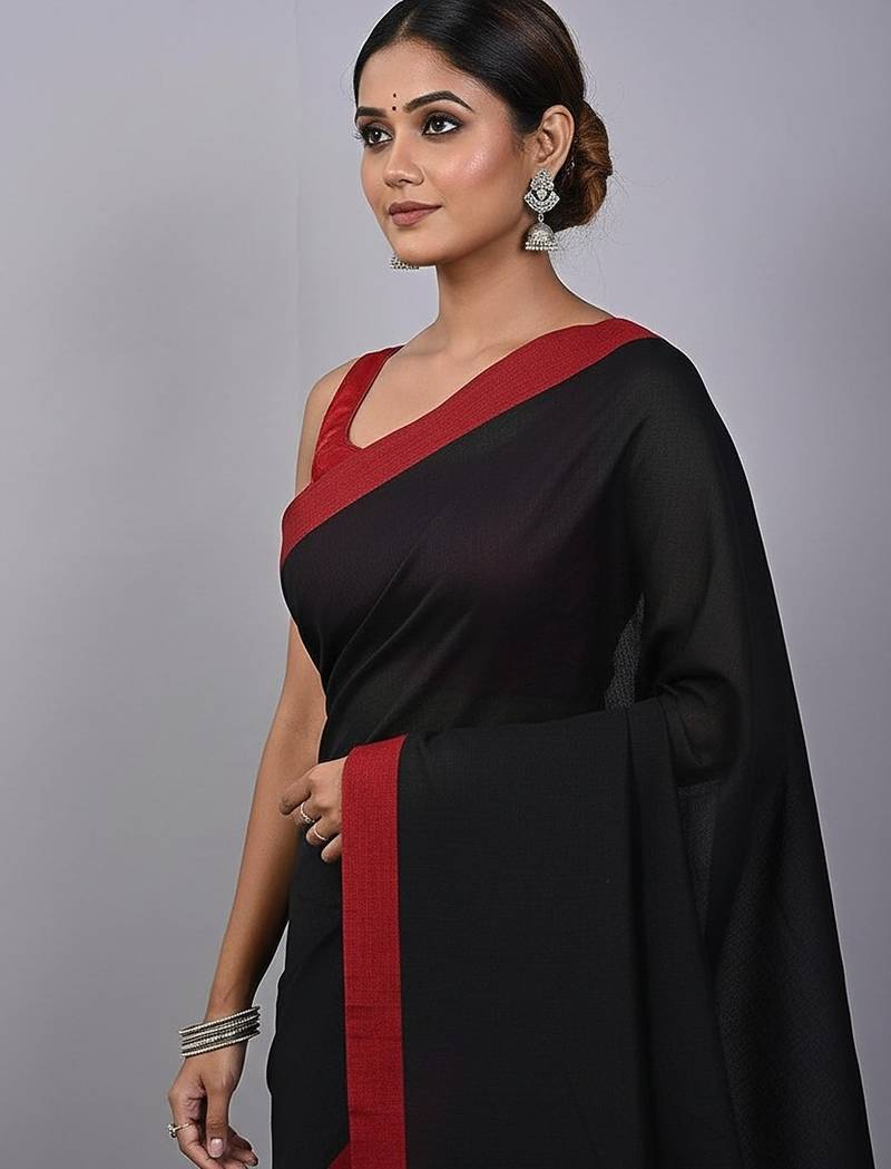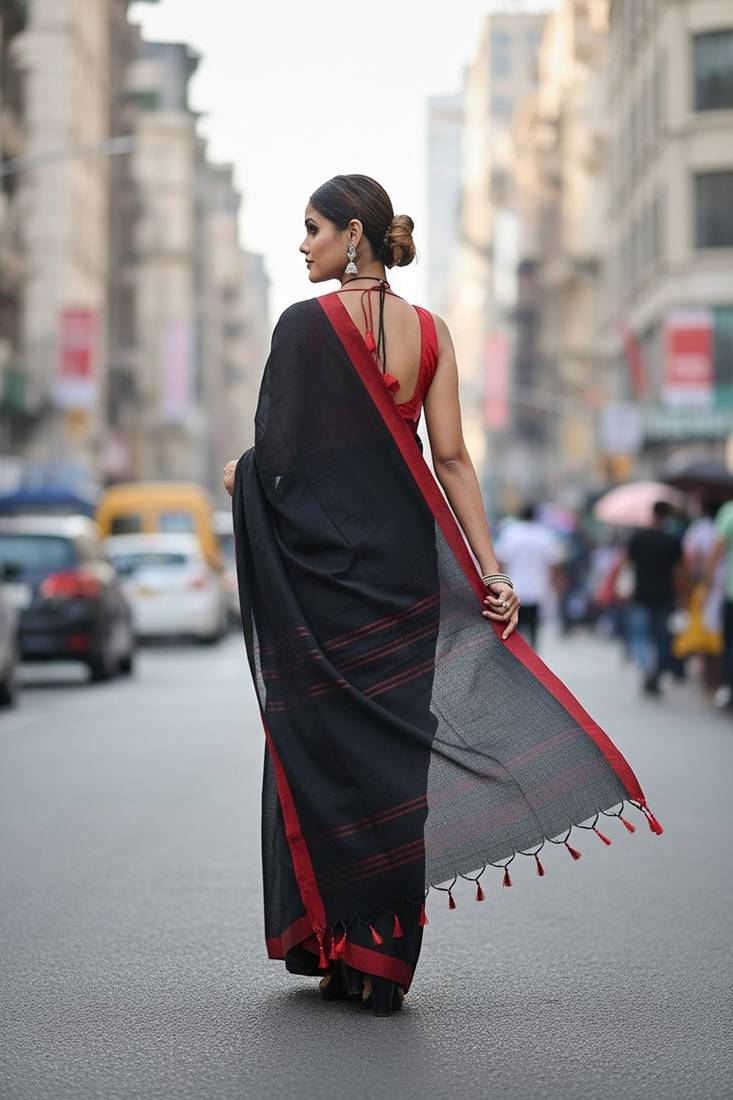 | Product Name | Red & Black Fancy Cotton Handloom Saree With Blouse Piece For Women | |