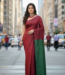 Red fancy cotton handloom saree with blouse piece for women