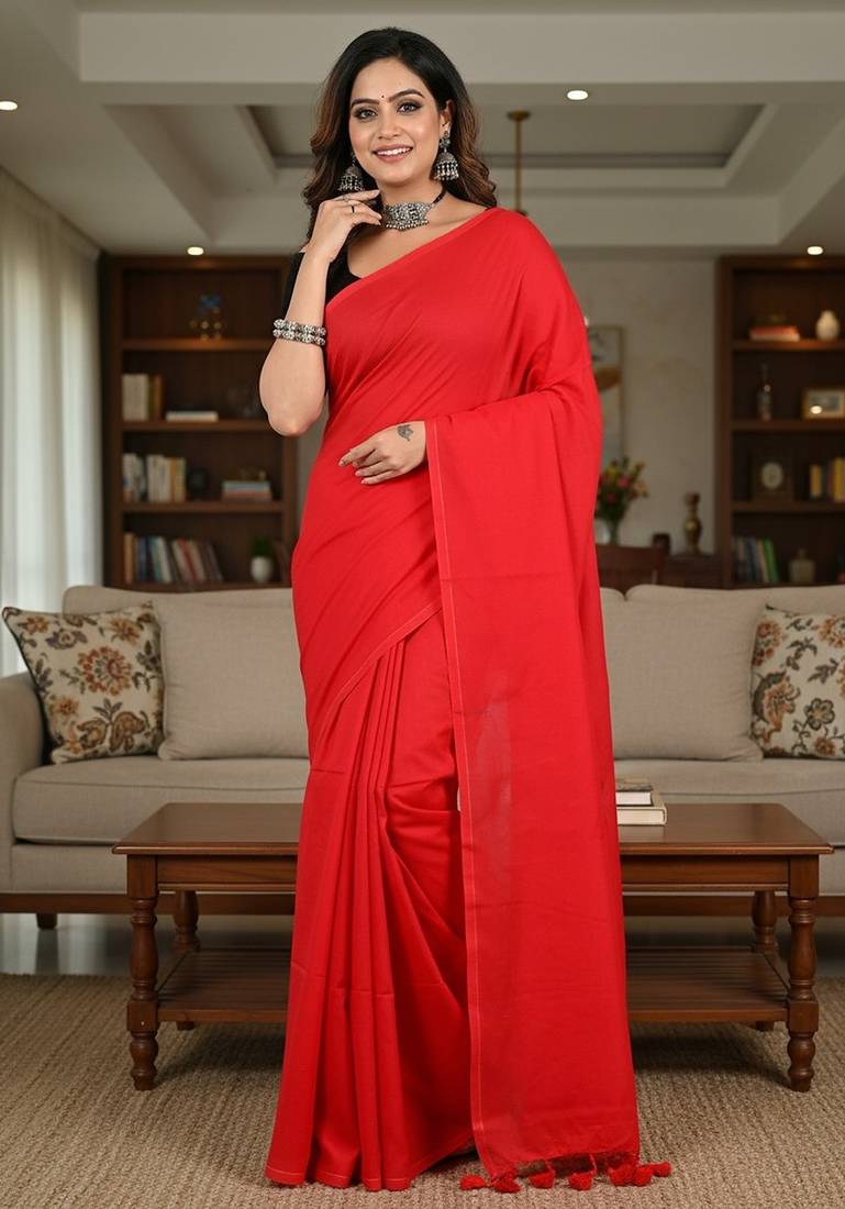 | Product Name | Red Fancy Cotton Handloom Saree With Blouse Piece For Women | |