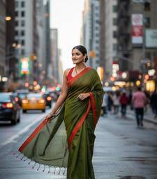 Red & green fancy cotton handloom saree with blouse piece for women