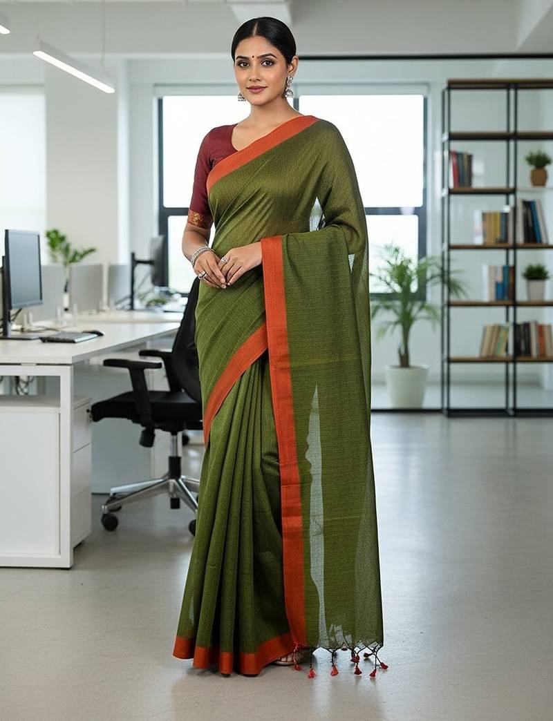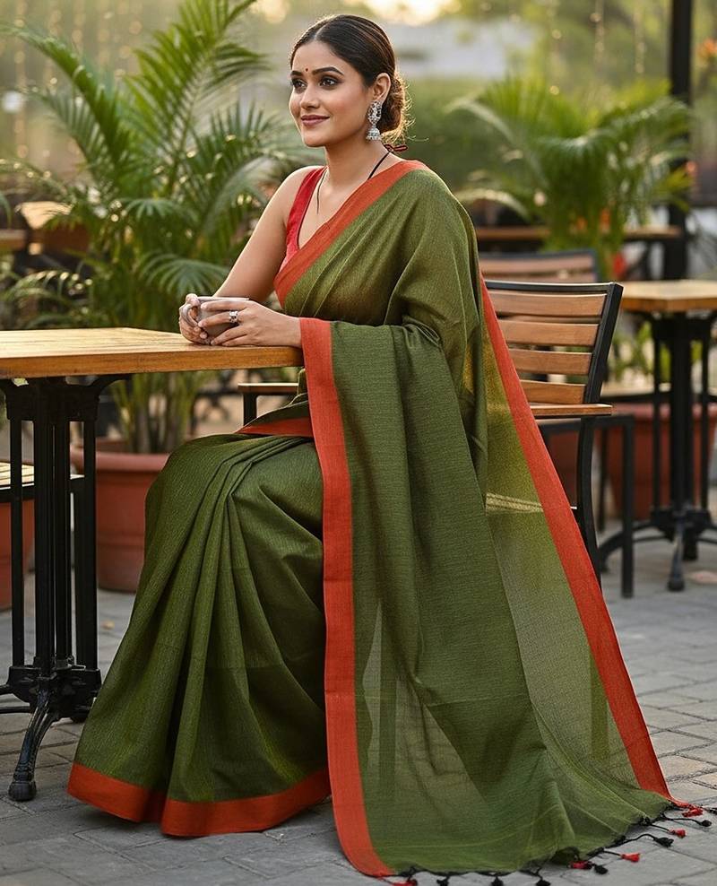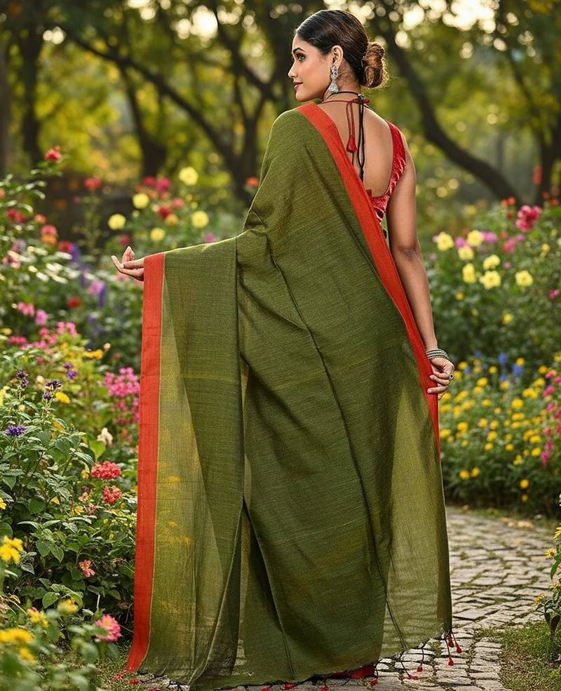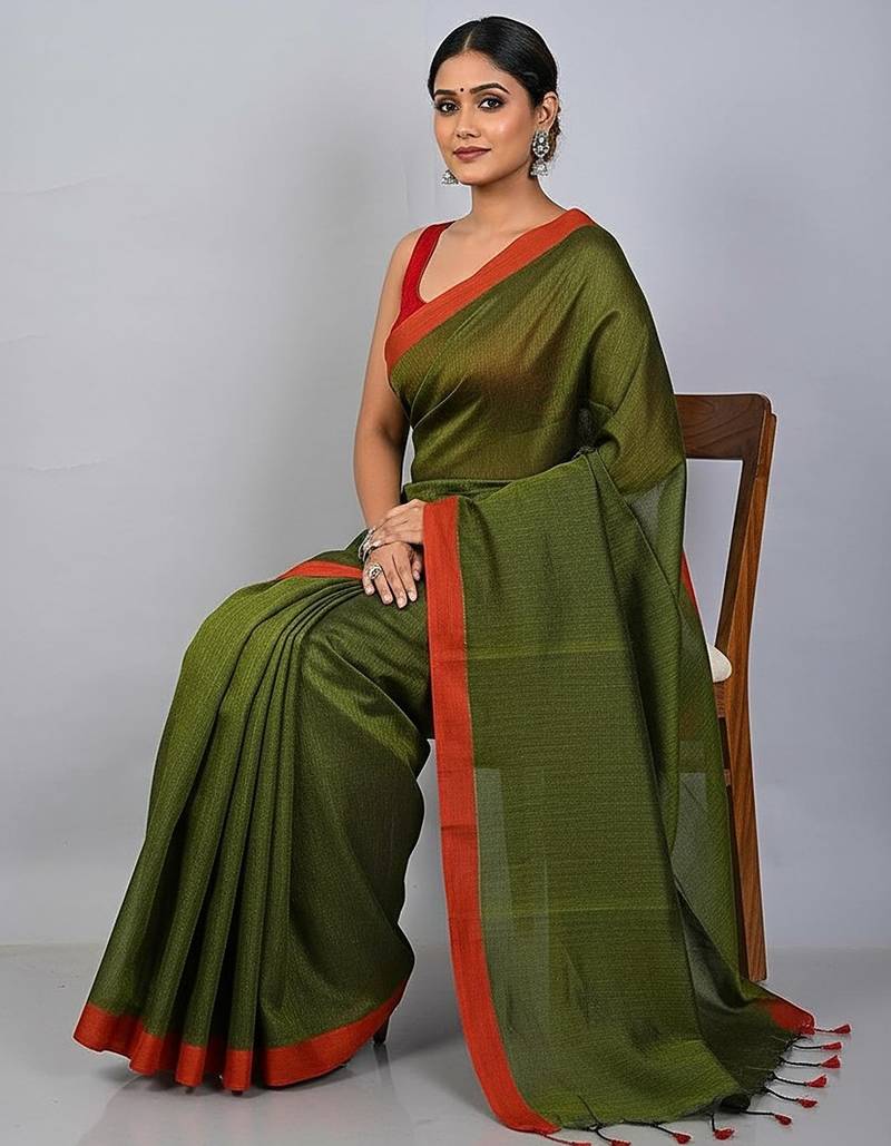 | Product Name | Red & Green Fancy Cotton Handloom Saree With Blouse Piece For Women | |