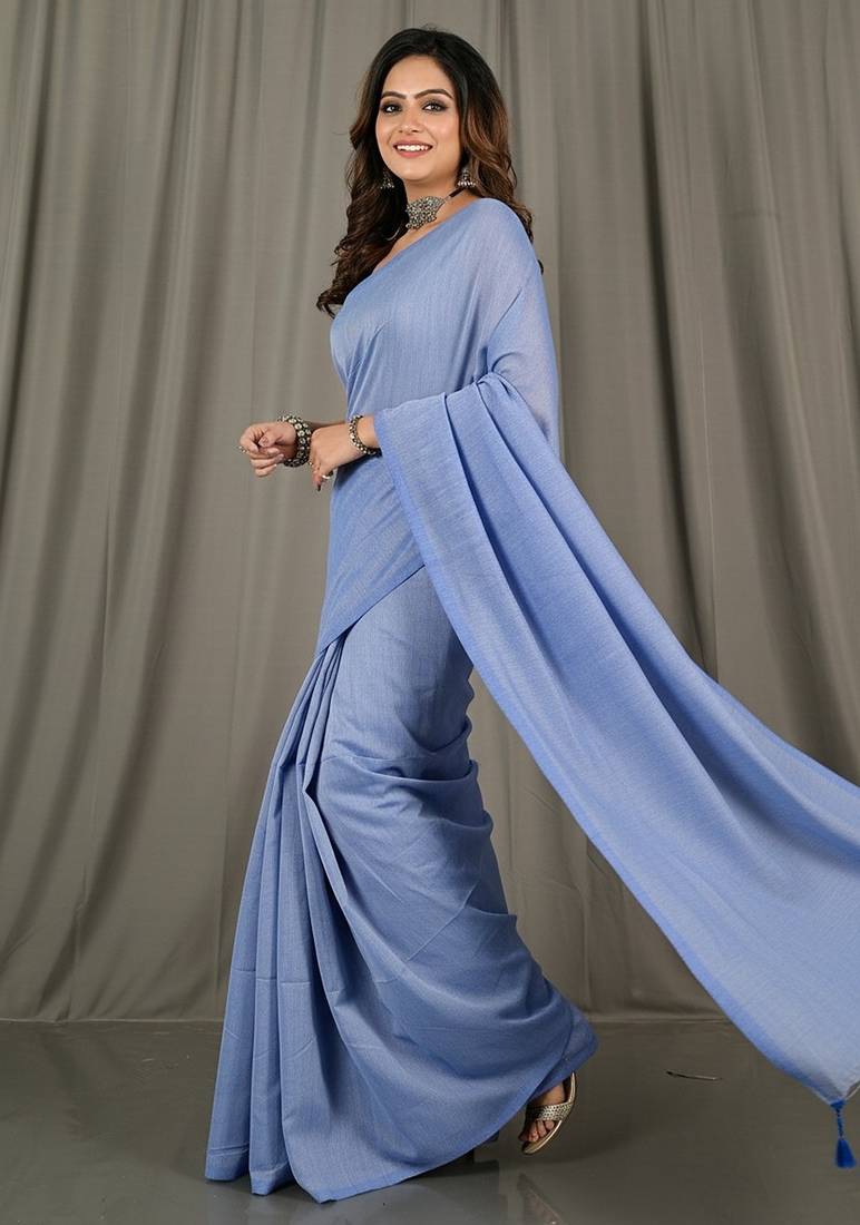 | Product Name | Sky Blue Fancy Cotton Handloom Saree With Blouse Piece For Women | |