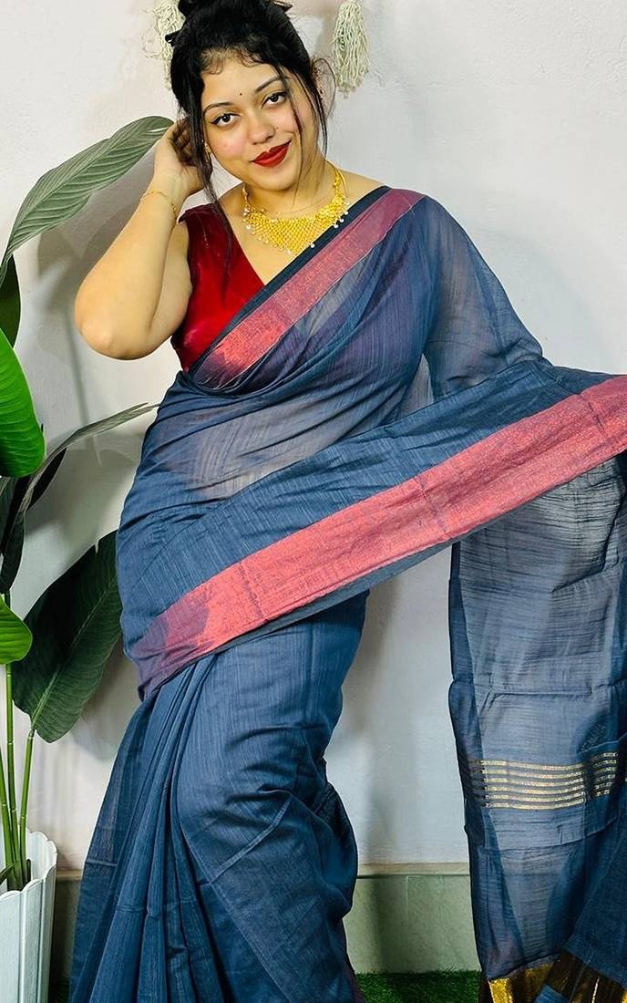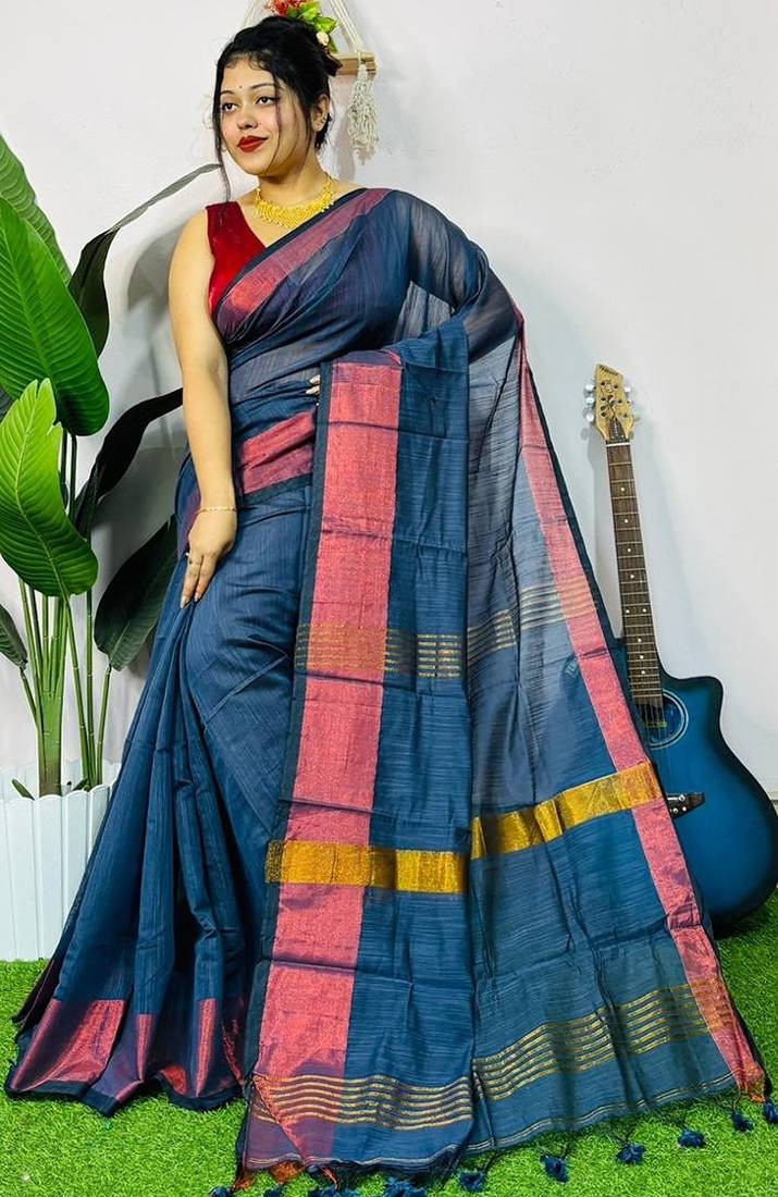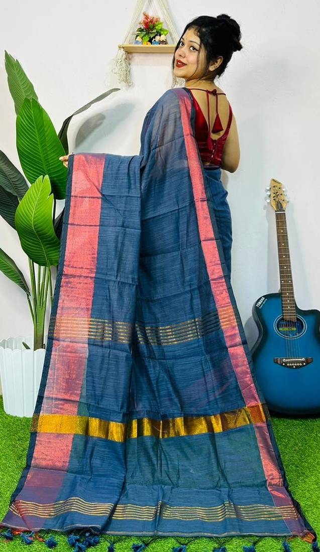 | Product Name | Blue Fancy Cotton Handloom Saree With Blouse Piece For Women | |