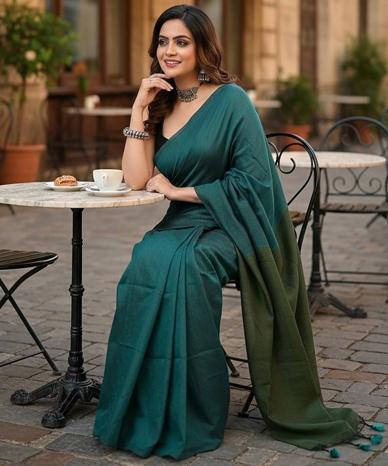 | Product Name | Teal Fancy Cotton Handloom Saree With Blouse Piece For Women | |