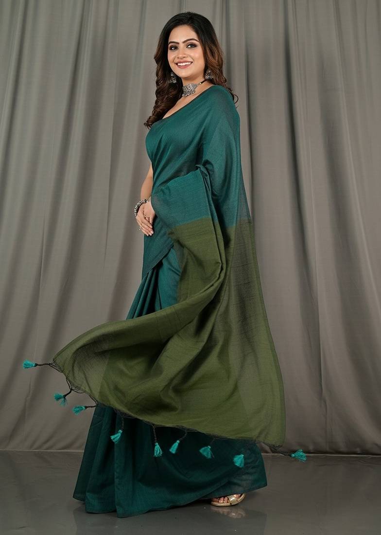 | • | Saree | : | Color- Teal / Fabric- Pure Cotton |