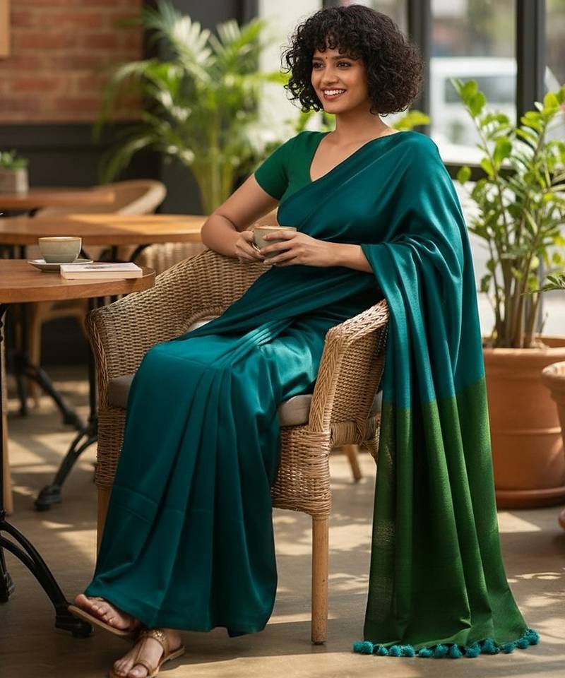 | • | Saree | : | Color- Teal / Fabric- Pure Cotton |