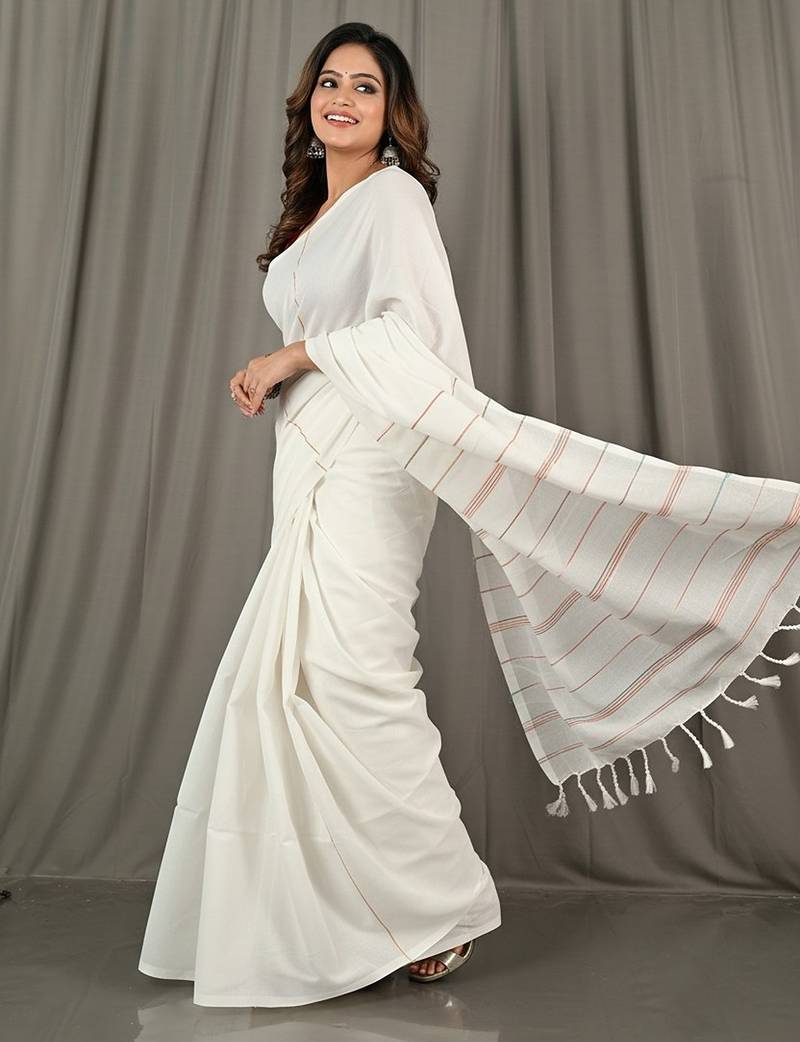 | Product Name | White Fancy Cotton Handloom Saree With Blouse Piece For Women | |