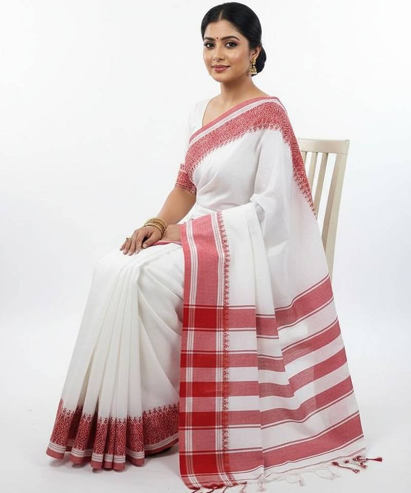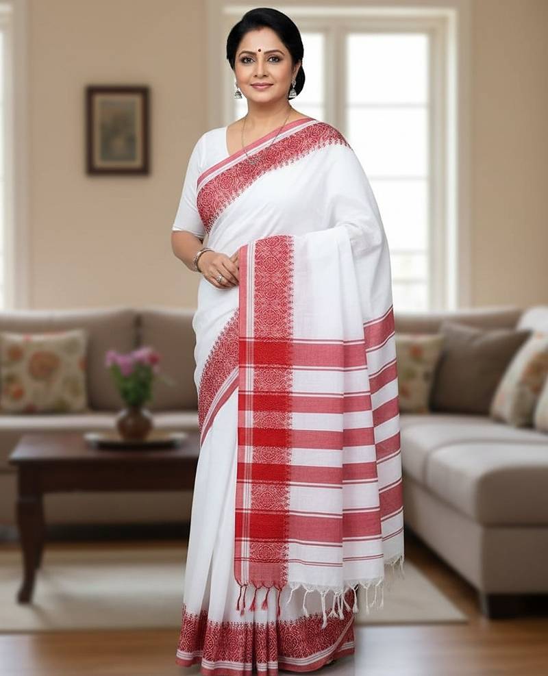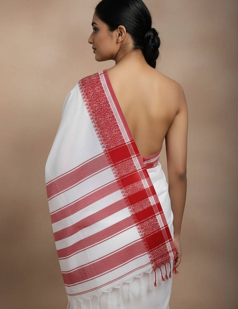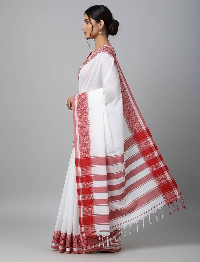 | Product Name | White & Red Fancy Cotton Handloom Saree With Blouse Piece For Women | |