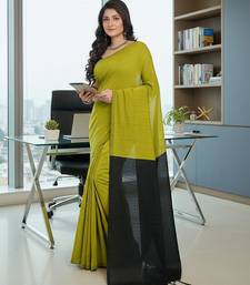 Yellow & black fancy cotton handloom saree with blouse piece for women