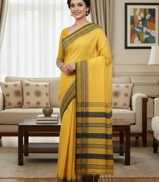 Yellow fancy cotton handloom saree with blouse piece for women