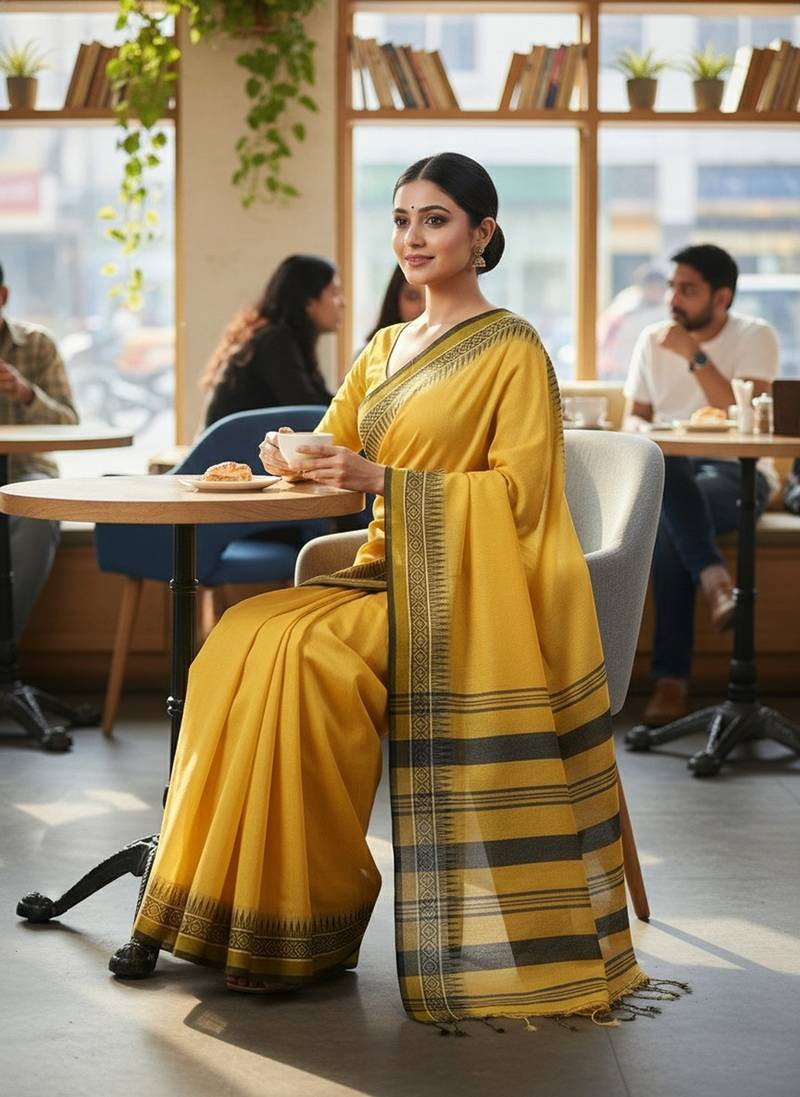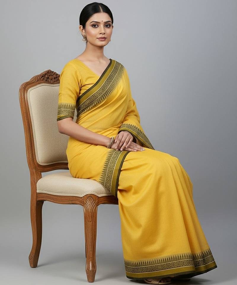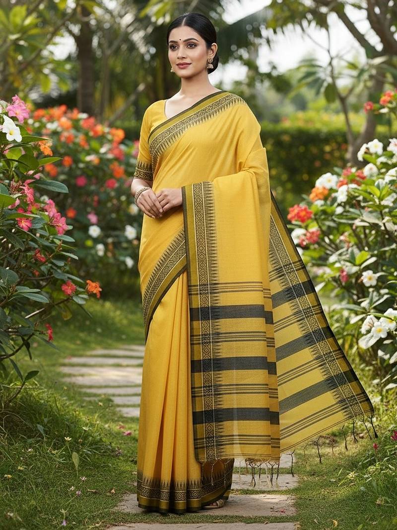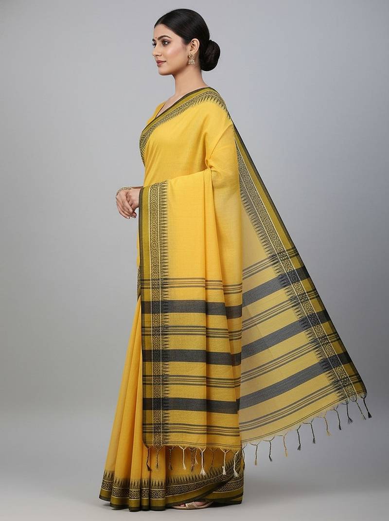 | Product Name | Yellow Fancy Cotton Handloom Saree With Blouse Piece For Women | |