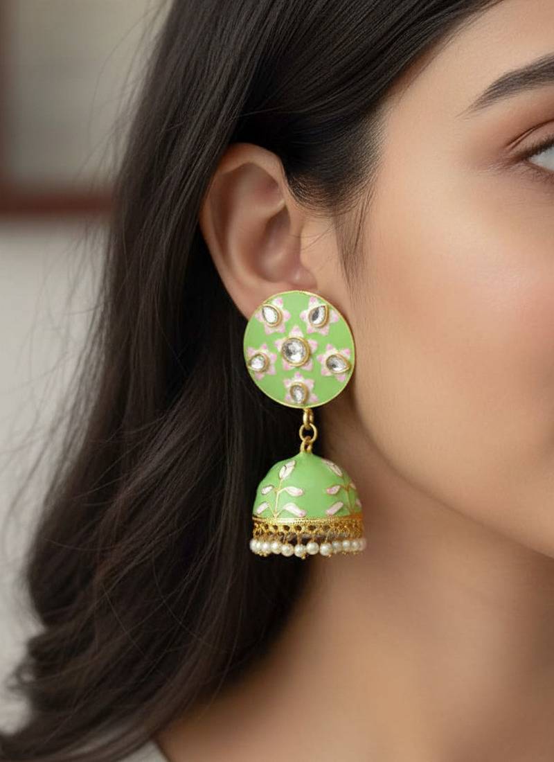 | Product Name | Mint Green Pink Meenakari Jhumki Earrings Set | |