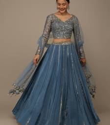 Blue sequins georgette lehenga set choli with dupatta with dupatta