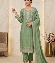| • | Dupatta | : | Color- Green / Fabric- Silk Blend |