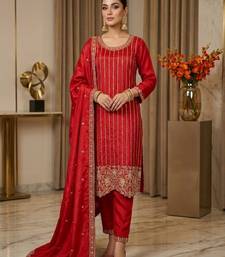 | Product Description | Stylish Red Ethnic Suit Adorned With Elegant Embroidery And Shimmering Vertical Detailing. The Kurta Pairs Beautifully With Matching Pants And A Dupatta, Creating A Sophisticated Festive Outfit. Perfect For Weddings, Receptions, And Special Celebrations, This Outfit Combines Rich Color With Traditional Craftsmanship. |