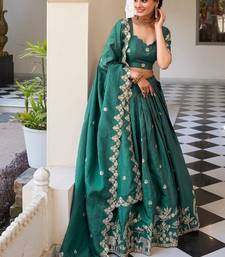 | Product Description | Sophisticated Teal Green Lehenga Featuring Delicate Embroidery Throughout The Skirt And Dupatta Border. The Fitted Blouse Complements The Voluminous Skirt For A Flattering Silhouette. Ideal For Weddings, Festive Gatherings, And Cultural Occasions, This Ensemble Showcases Rich Color And Timeless Ethnic Craftsmanship. |