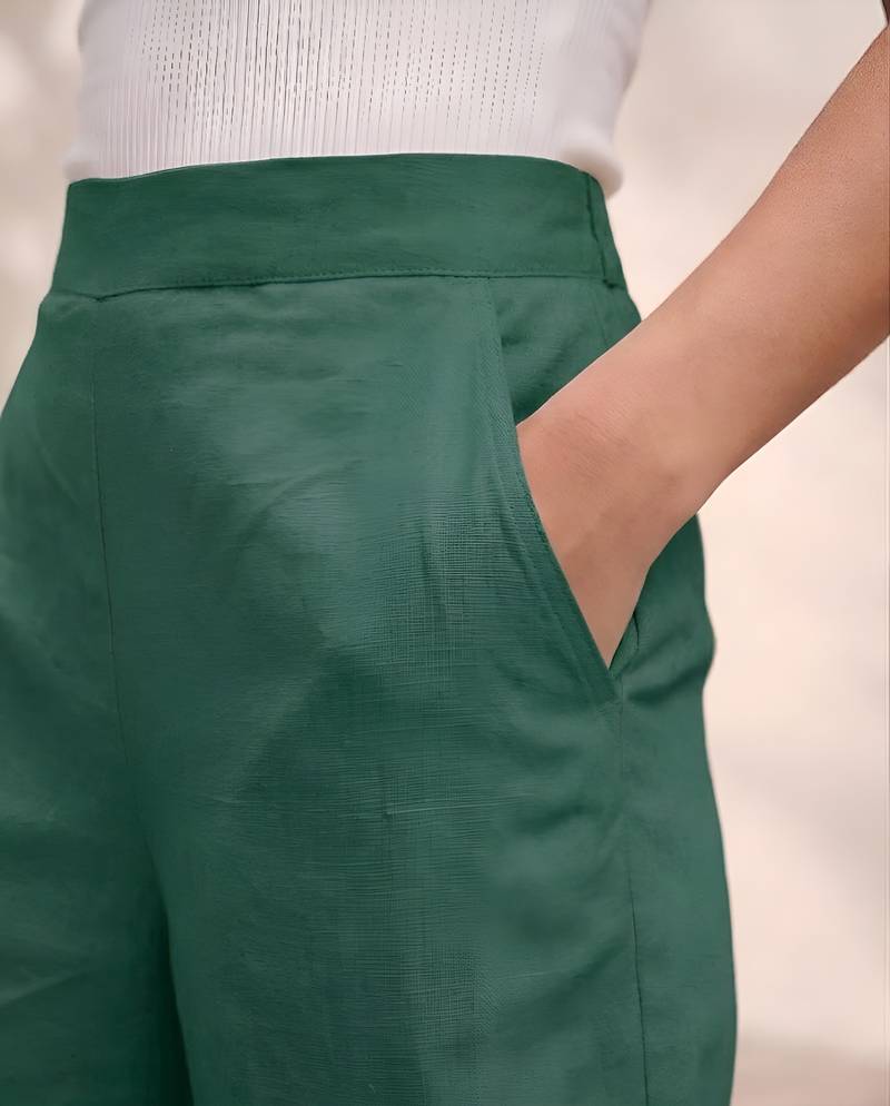 | Product Name | Dark Green Casual Linen Blend Straight Fit Pants | |