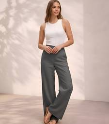 Dark grey casual linen blend straight fit pants