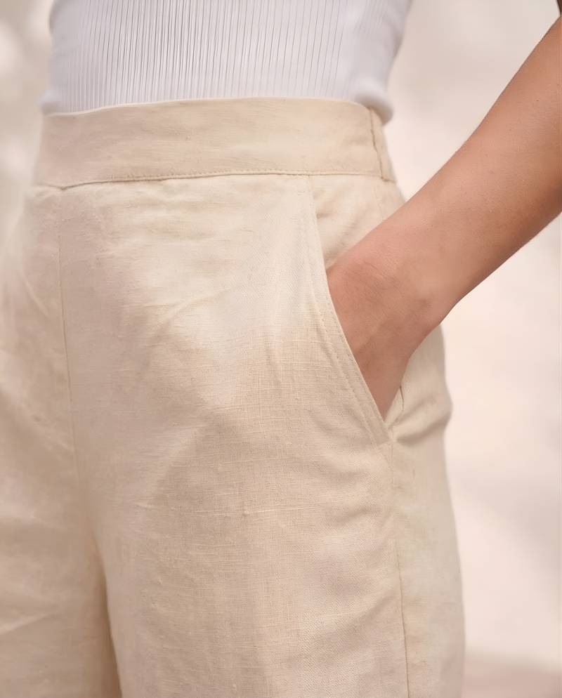 | Product Name | Off White Casual Linen Blend Straight Fit Pants | |