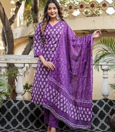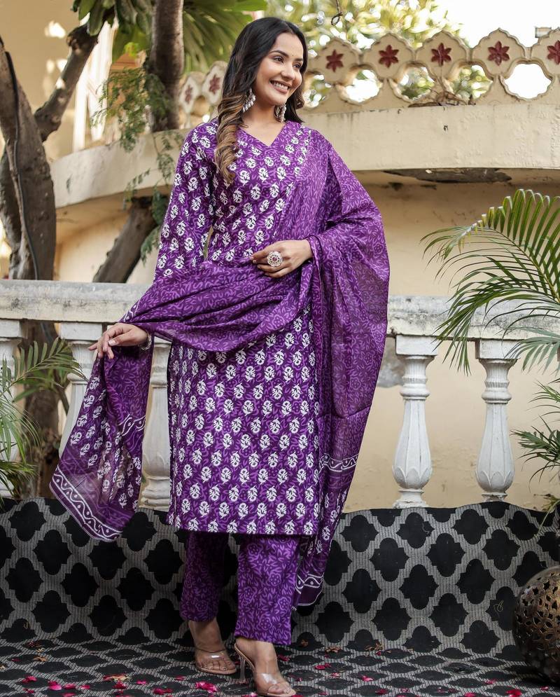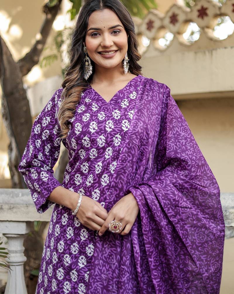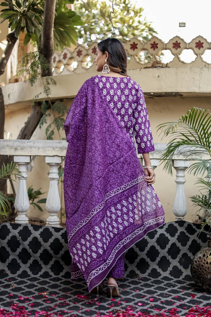 | Product Name | Purple Floral Block Print Cotton Straight Kurta Set With Dupatta | |