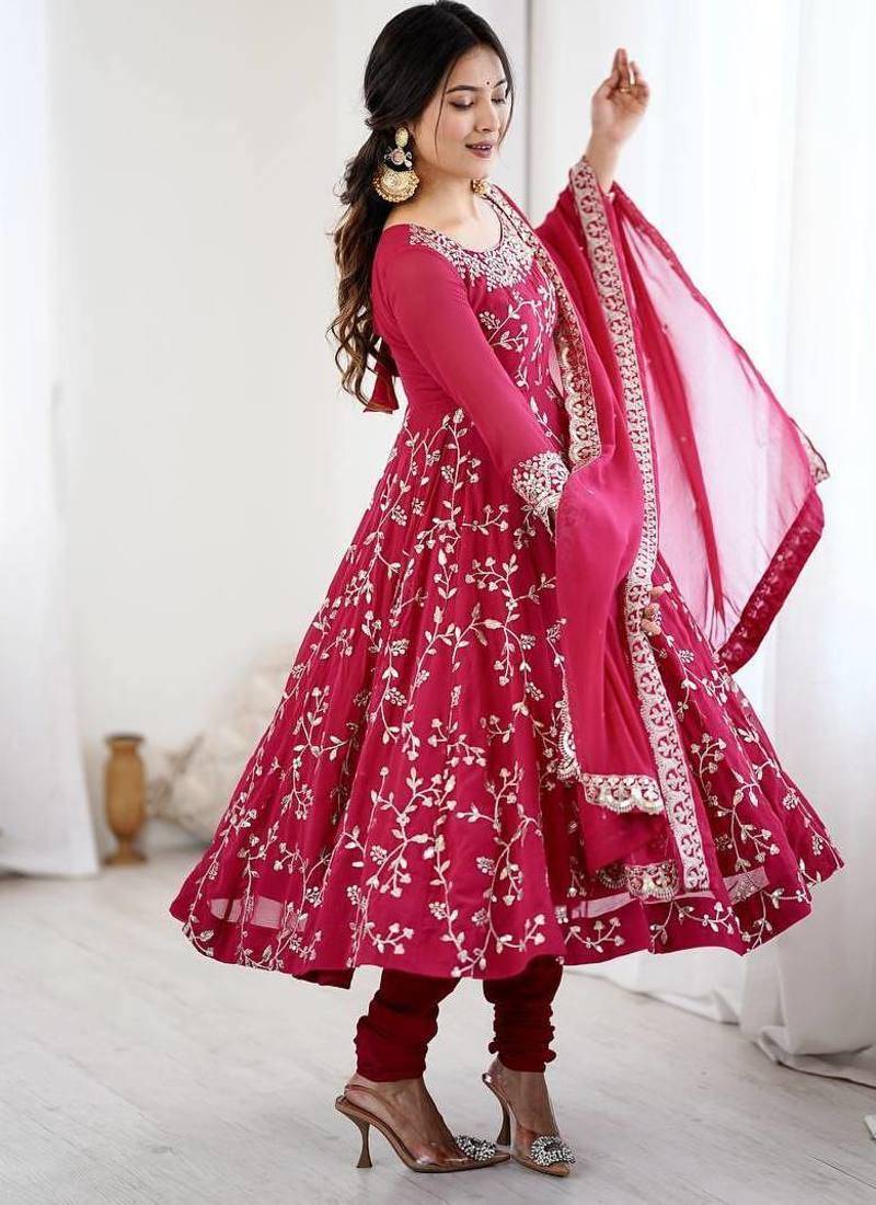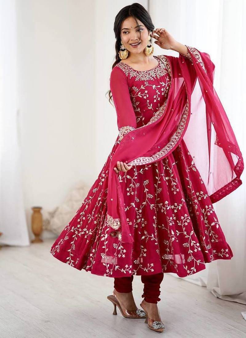 Heavy faux georgette with embroidery sequence work with fully flair gown ,pant with dupatta set stitched