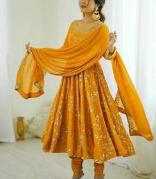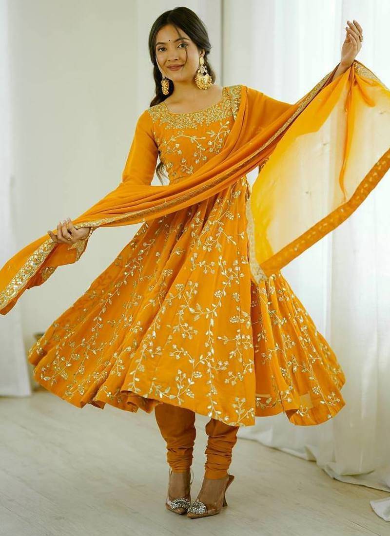Heavy faux georgette with embroidery sequence work with fully flair gown ,pant with dupatta set stitched